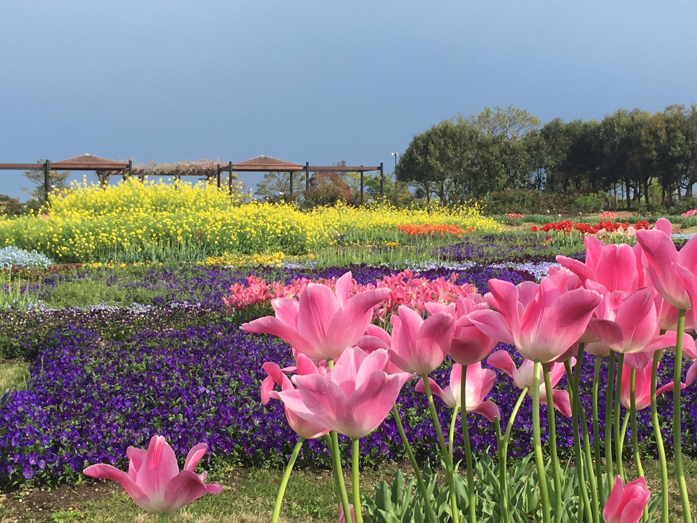 農業園芸センターでは震災前さまざまな種類のバラや花が咲きみだれていましたが、津波の被害を受けてしまいました。しかし今回のイベントでは、色とりどりのチューリップやパンジーの花が咲き誇り、お客さんも見とれていました。