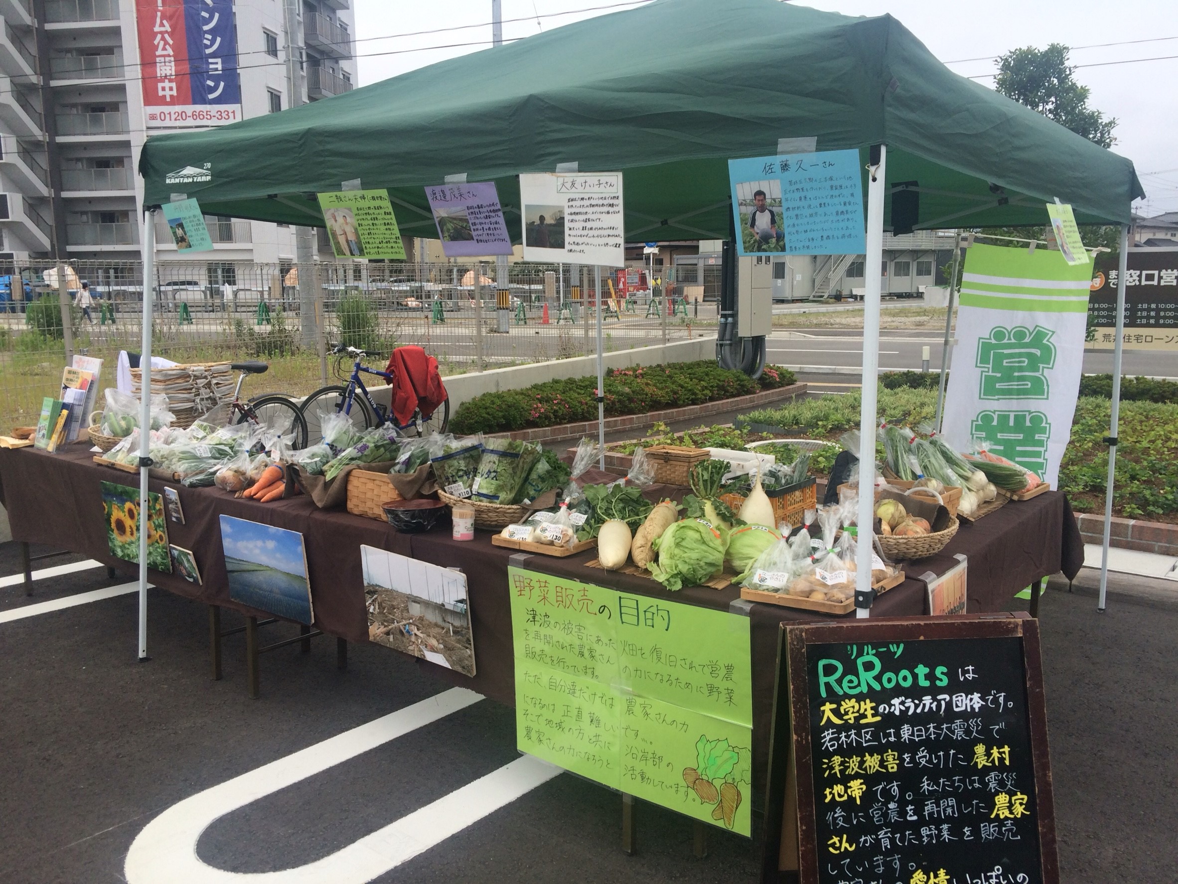 今回は、地下鉄荒井駅そばにある荘内銀行さん主催の”あらいマルシェ”に、私たちReRootsも出店させていただきました!あらいマルシェは「若林区の力に少しでもなれれば…」という思いから荘内銀行さんが企画なさったイベントです。